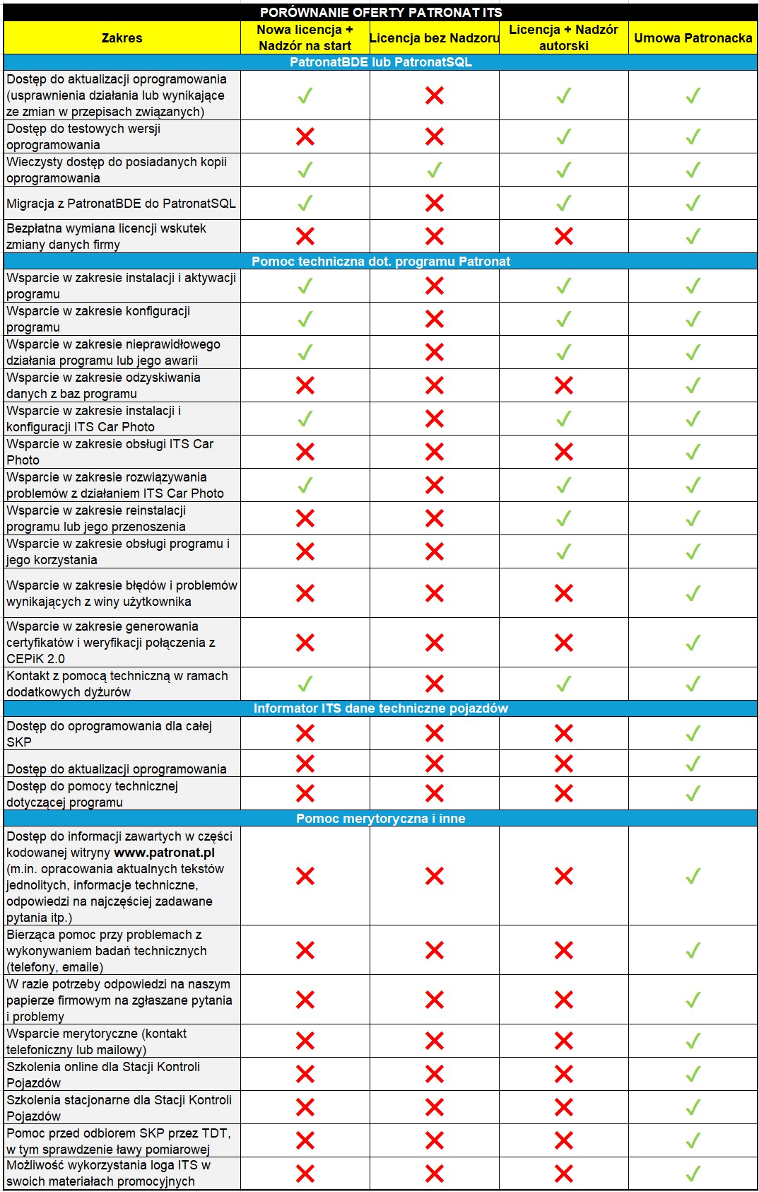 Oferta Patronat ITS dla SKP - porównanie zakresu ofert